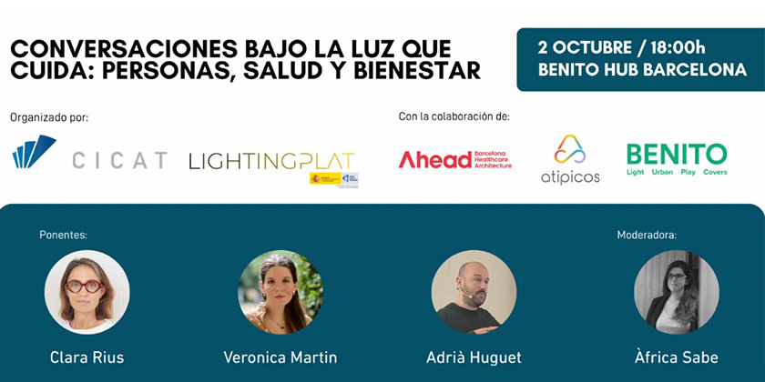 Durante octubre, LIGHTINGPLAT y el clúster CICAT organizaron una jornada de conversación sobre la luz bajo una premisa sencilla y potente: la luz no es neutra. Moderado por Àfrica Sabé, fueron parte del panel las visiones de Clara Rius, arquitectura sanitaria; Adrià Huguet, científico de la luz; y Verónica Martín, interiorista y activista por la neurodiversidad; quienes contaron con la participación constante del público.
