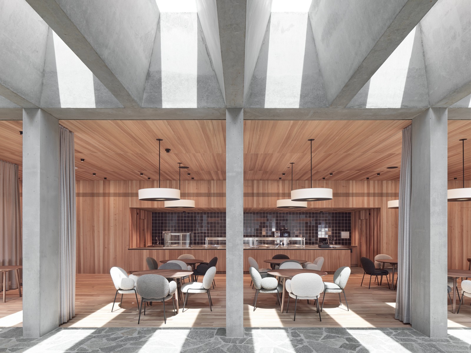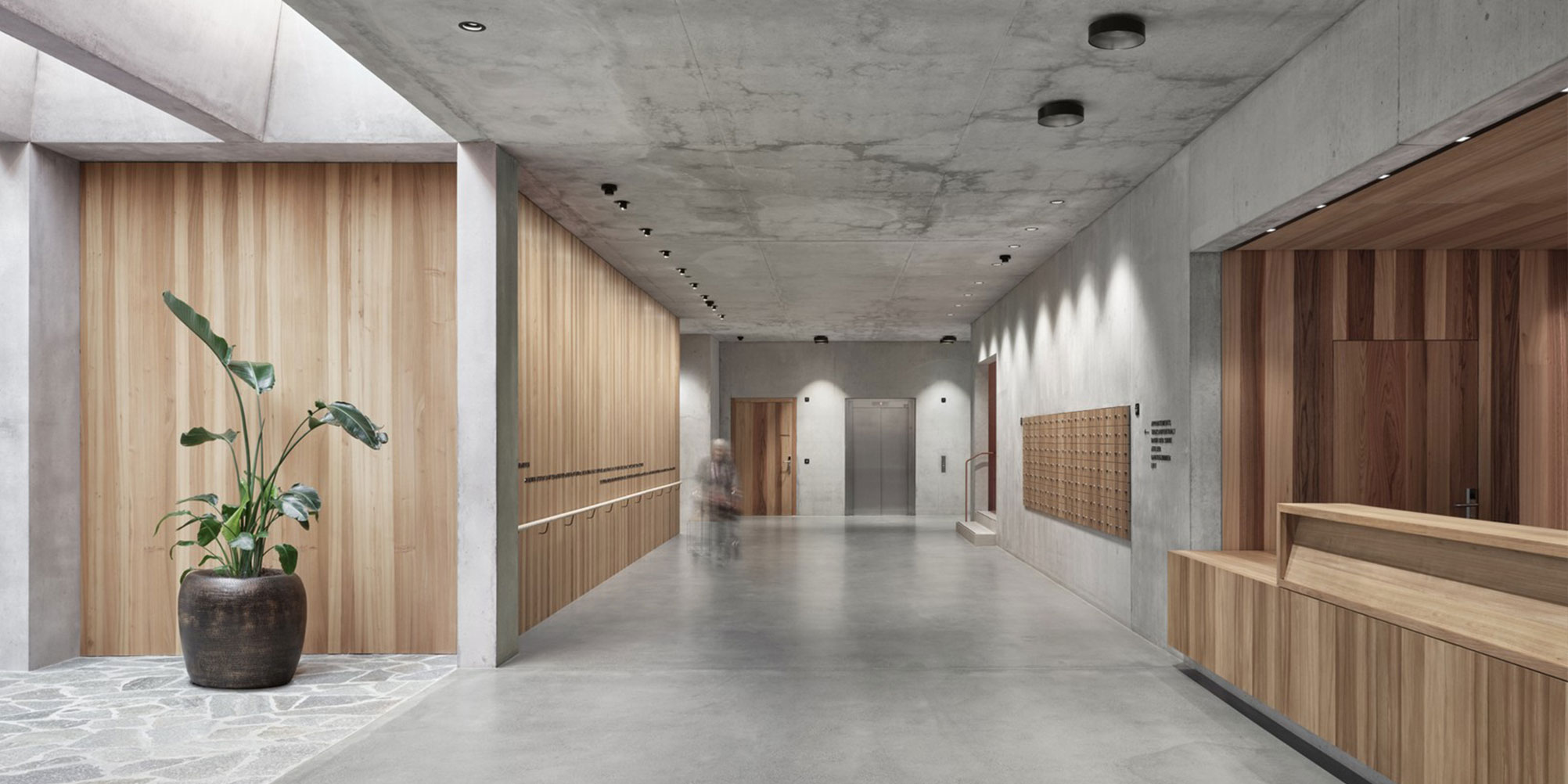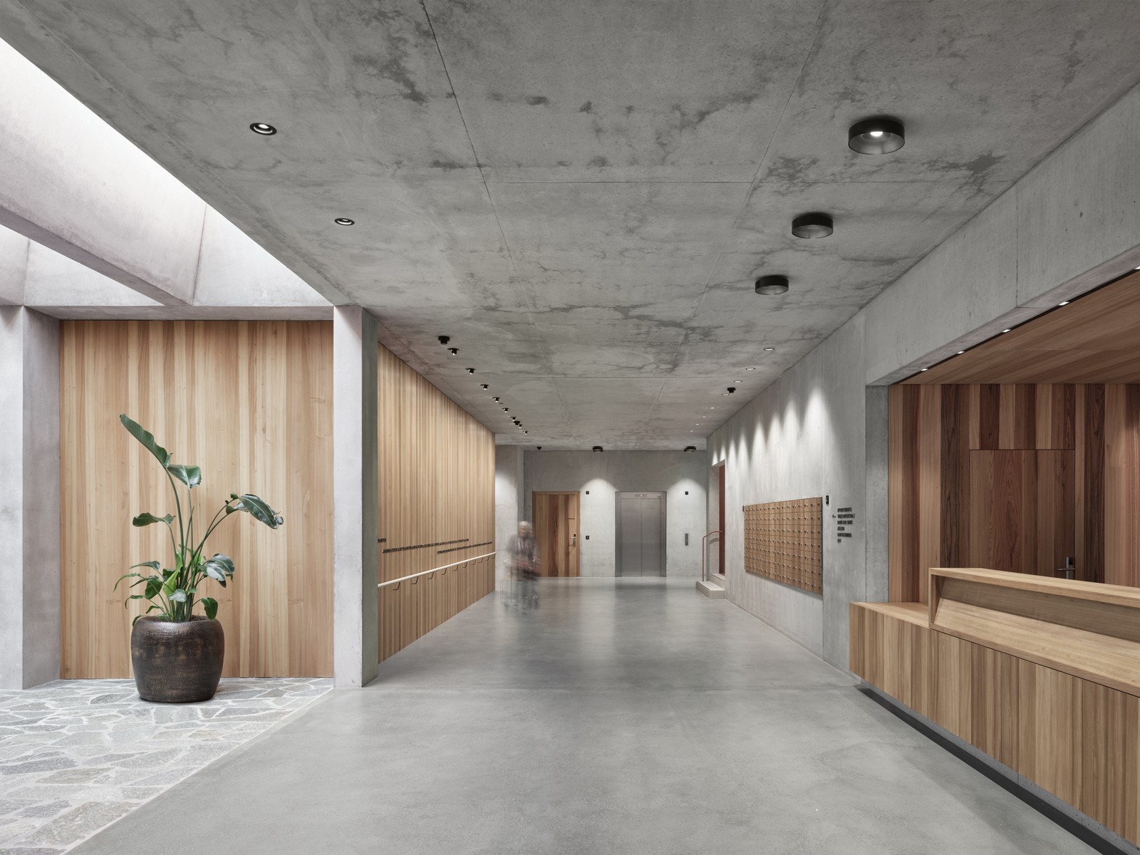 El concepto de diseño detrás de esta propuesta pone a los residentes en el centro de atención. El formato de apartamento constituye la base organizativa de la vivienda: las zonas separadas de dormitorio y sala de estar resaltan el lugar que ocupa cada habitación dentro de una residencia tipo apartamento.