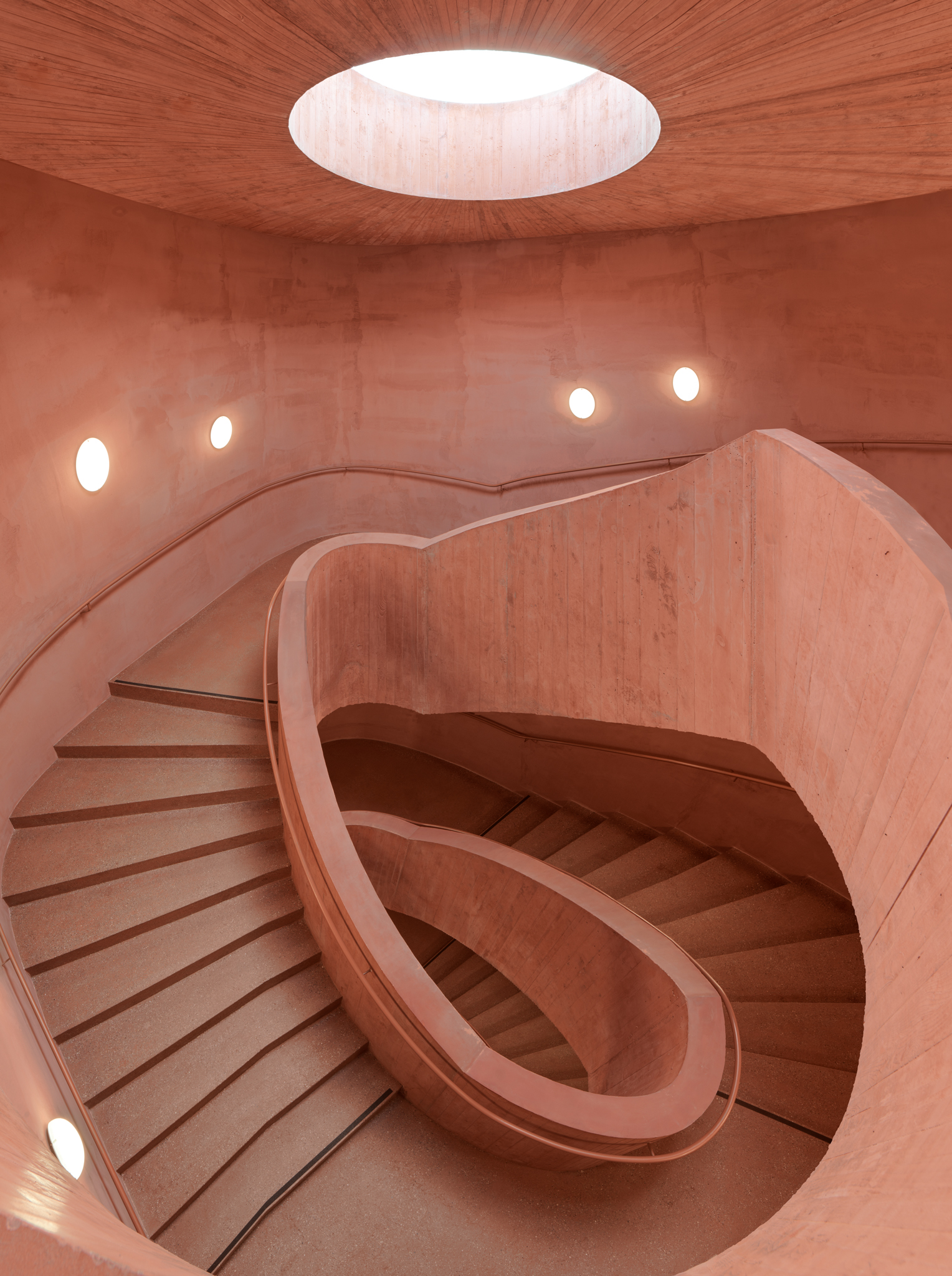 Los apartamentos están organizados en dos anillos interconectados de ocho unidades cada uno, con dos agrupaciones de este tipo por piso. Dentro de los anillos, la luz llega a través de atrios de tres pisos a los espacios secundarios y las funciones compartidas a las que se accede desde el interior.