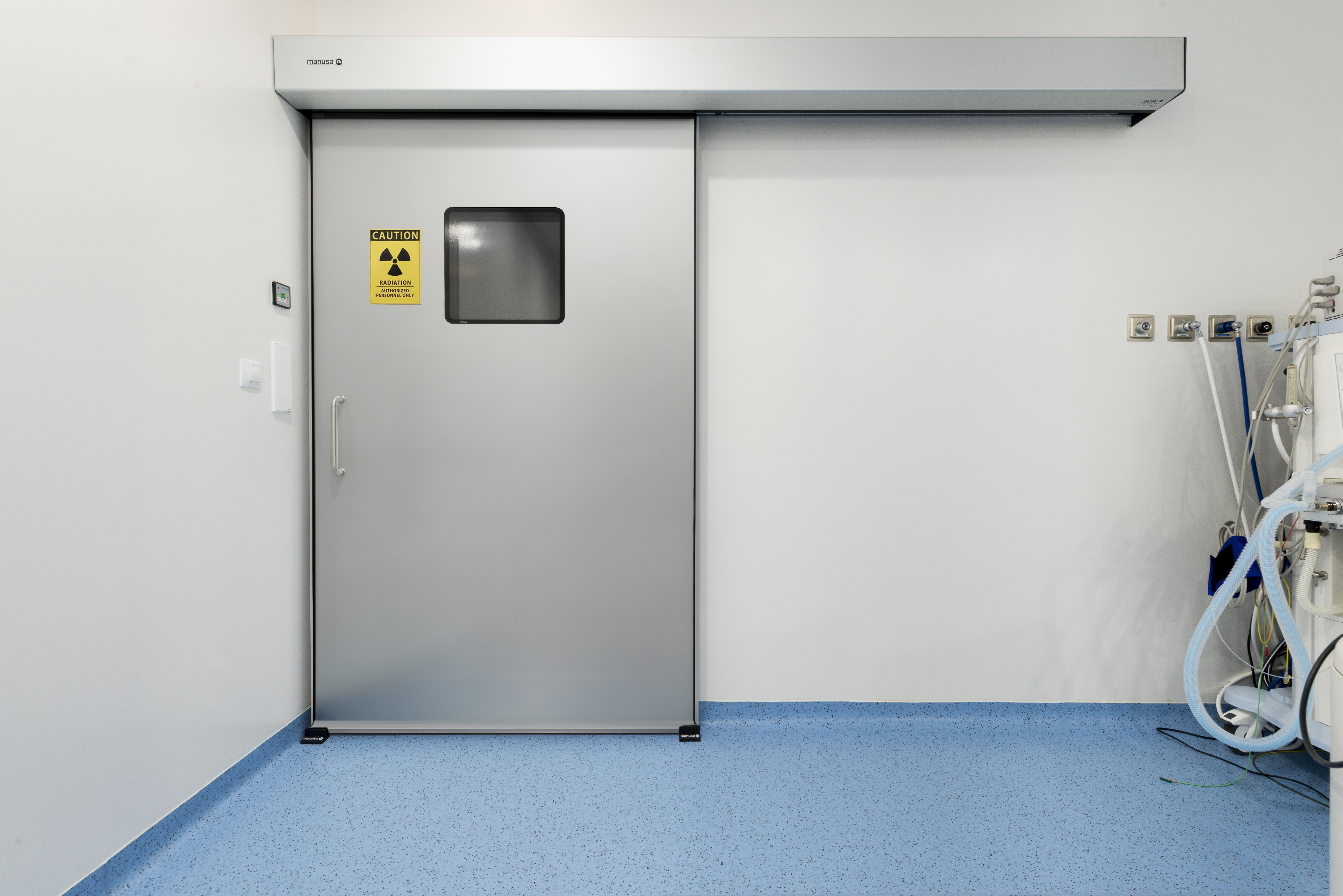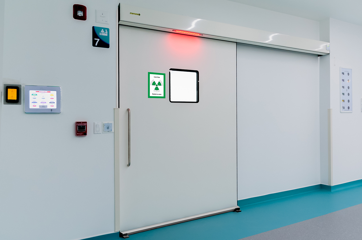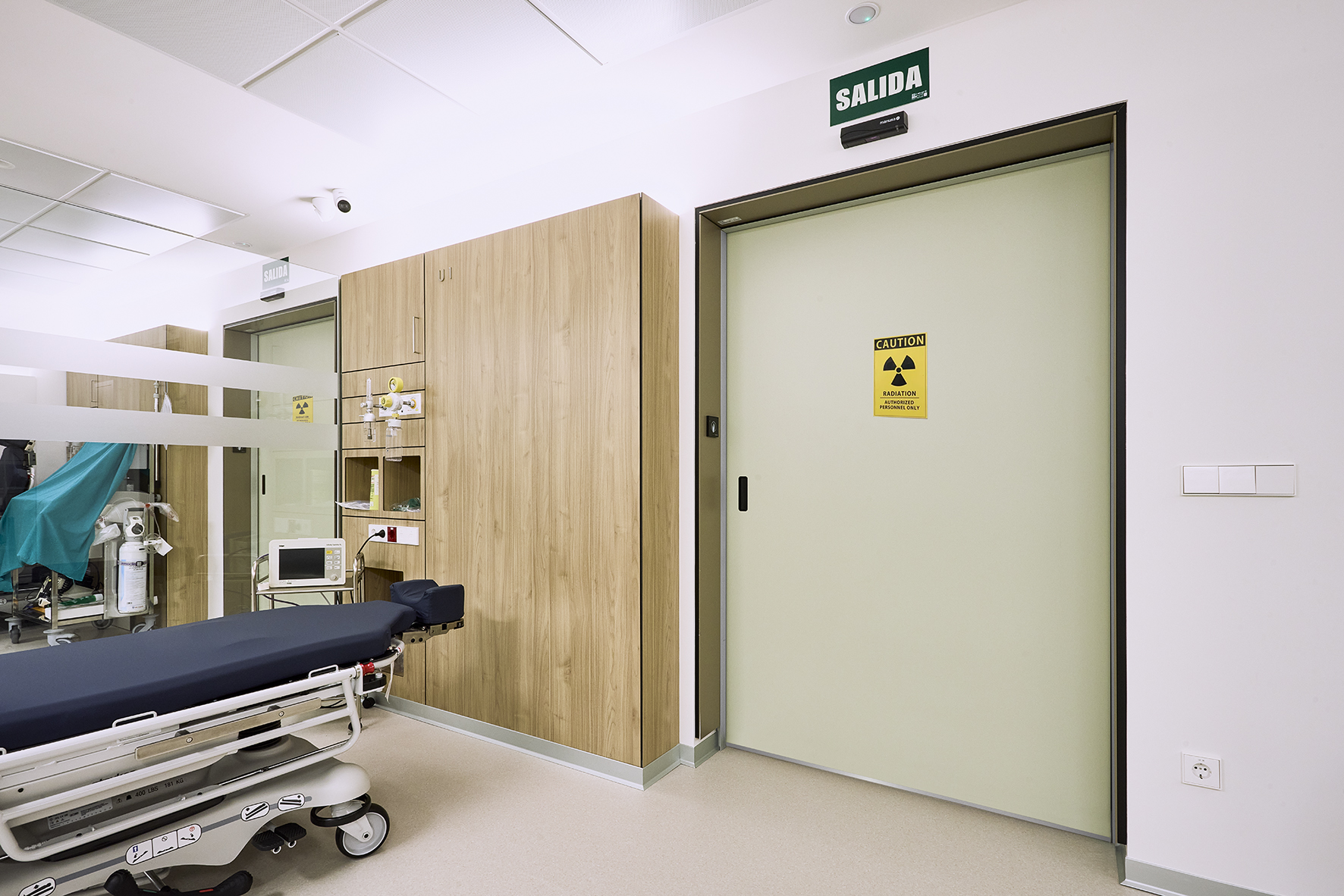 Su protección radiológica se basa en una lámina de plomo de hasta 3 mm de espesor, integrada en la hoja de la puerta. Este blindaje garantiza una barrera eficaz frente a radiaciones ionizantes, protegiendo tanto a los pacientes como a los profesionales en las salas de rayos X y áreas de radiología.
