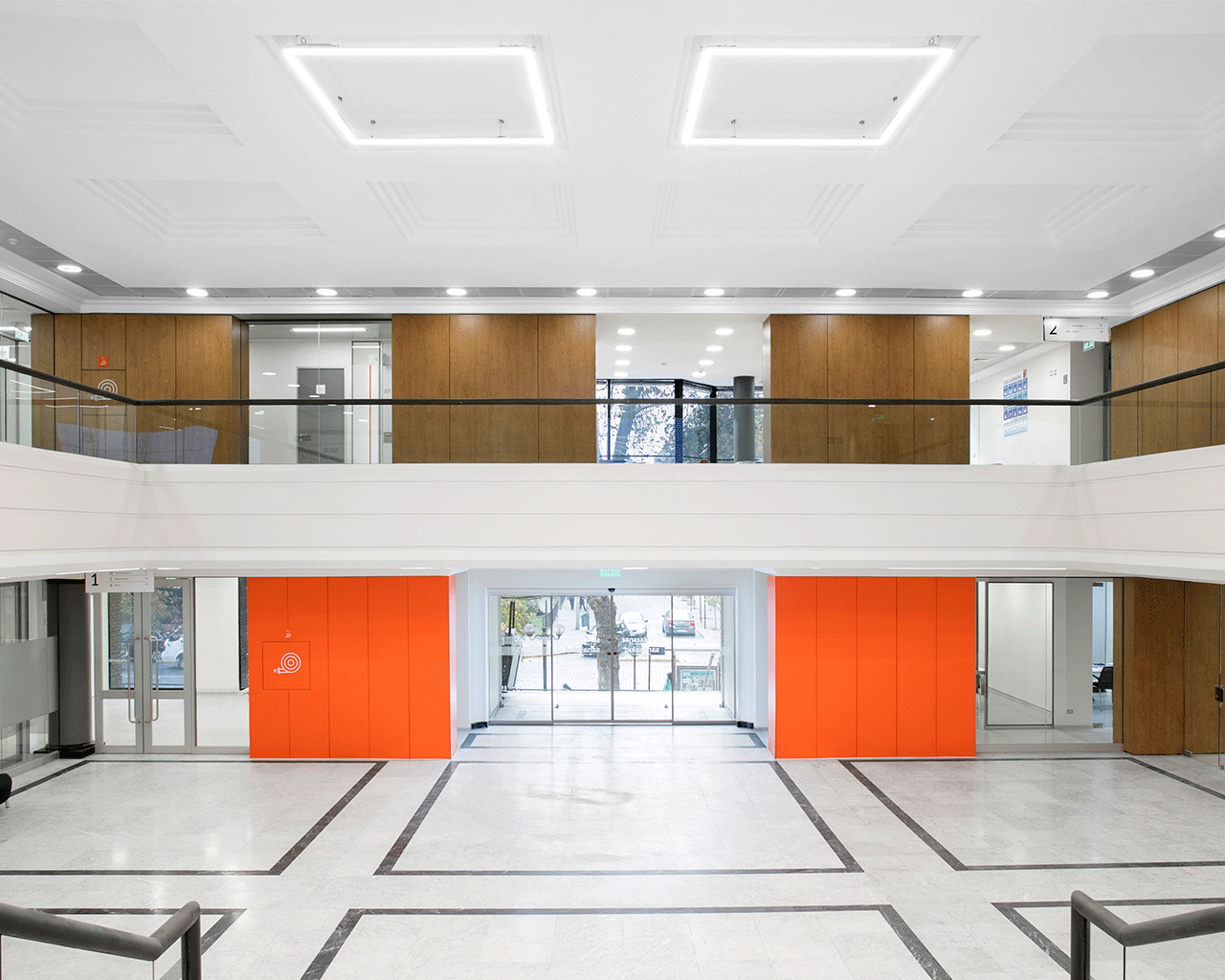 La habilitación consideró la reutilización de las circulaciones verticales, adaptándolas a los nuevos estándares e incorporándolas al flujo del proyecto en desarrollo. Se consideró conservar también el gran Hall de doble altura que formaba parte del edificio existente y que luego, por vía del diseño, fue potenciado, liberándolo al flujo y circulación como un gran atrio de confluencia y bienvenida.