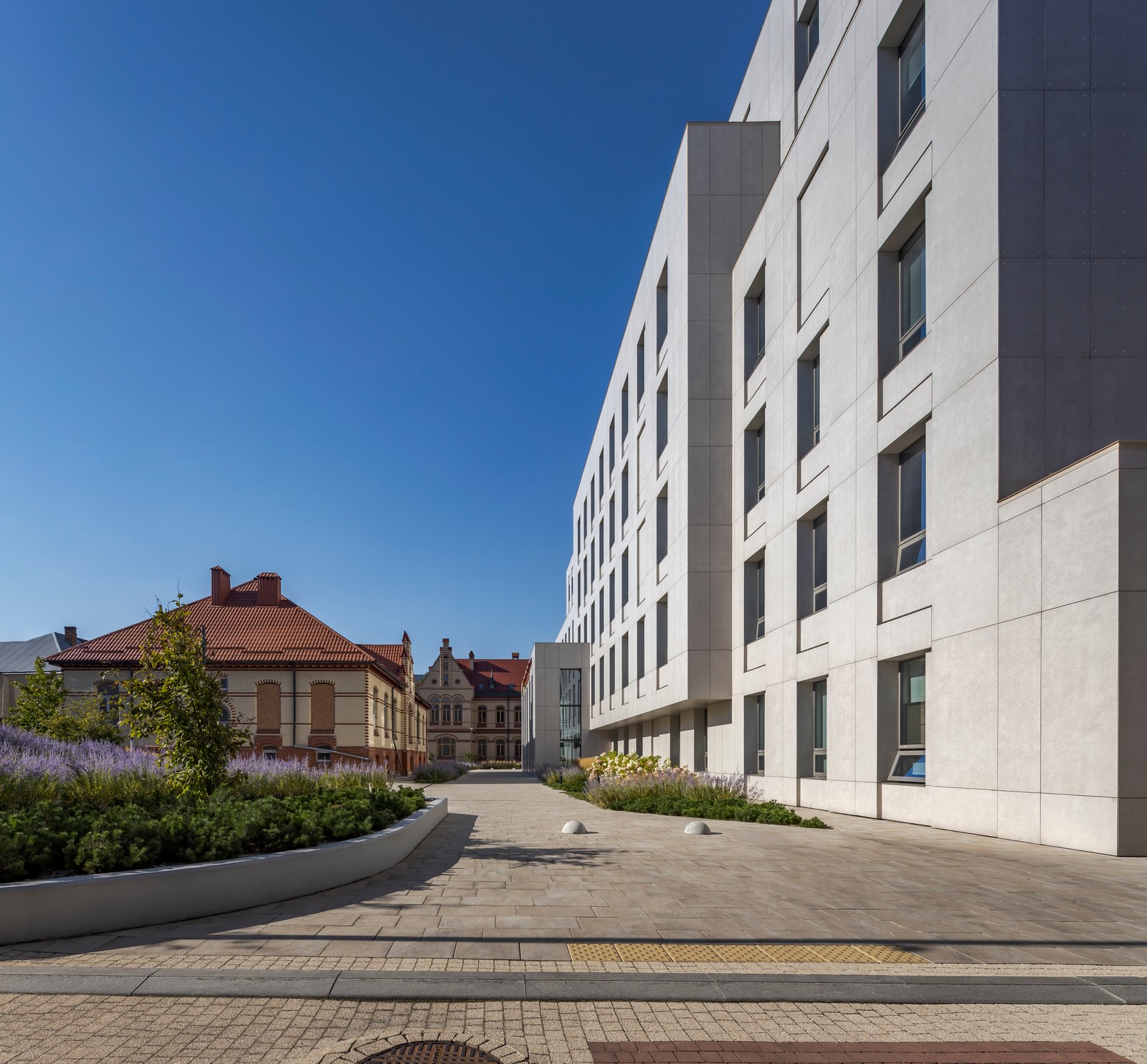 El proyecto se integra en el conjunto histórico del antiguo Anton and Valeria Bilinski Hospital, cuyos edificios están dispuestos a lo largo del perímetro de un rectángulo, formando un patio interior. La solución arquitectónica combinó la restauración de los edificios del siglo XIX con un nuevo bloque médico, con el fin de preservar el contexto cultural y crear un espacio moderno para los pacientes y el personal.
