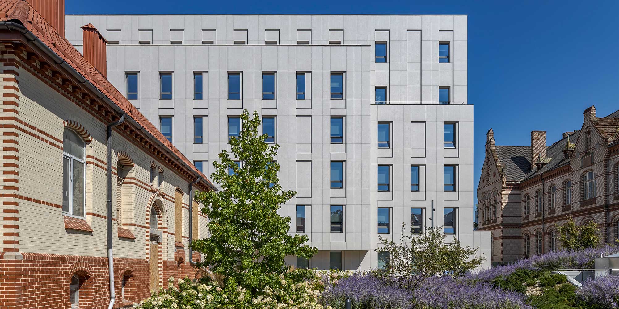 El proyecto se integra en el conjunto histórico del antiguo Anton and Valeria Bilinski Hospital, cuyos edificios están dispuestos a lo largo del perímetro de un rectángulo, formando un patio interior. La solución arquitectónica combinó la restauración de los edificios del siglo XIX con un nuevo bloque médico, con el fin de preservar el contexto cultural y crear un espacio moderno para los pacientes y el personal.