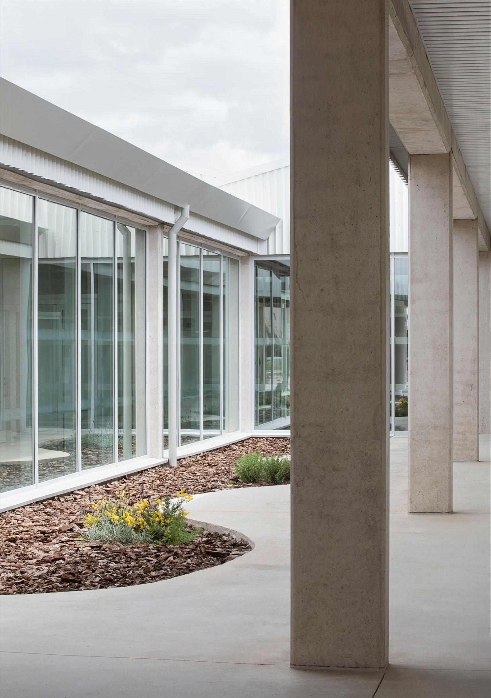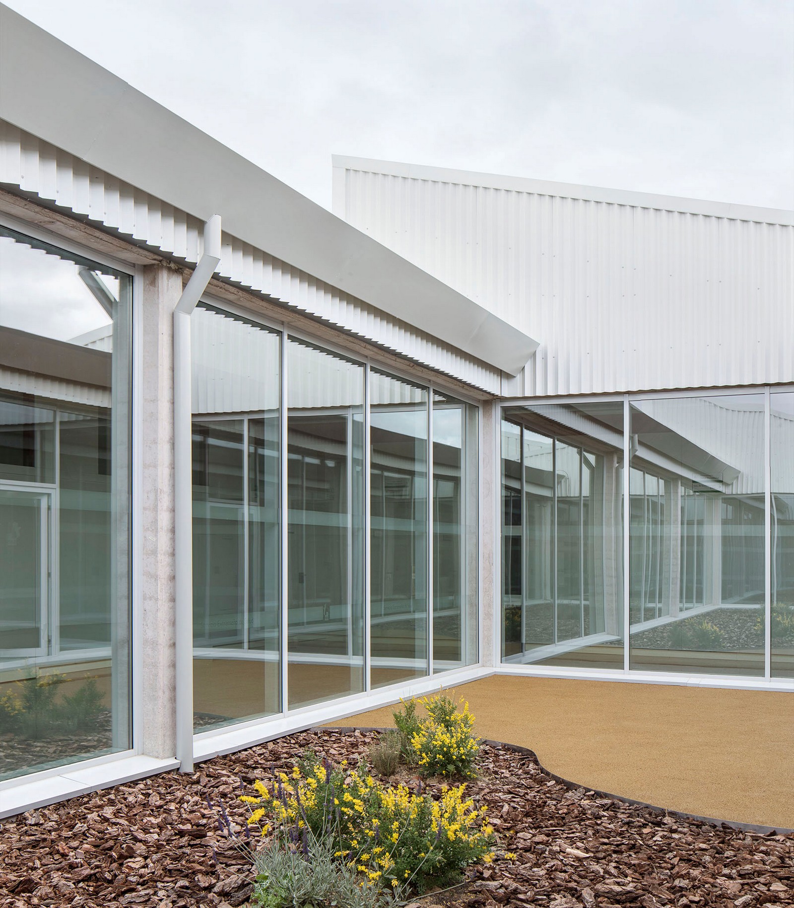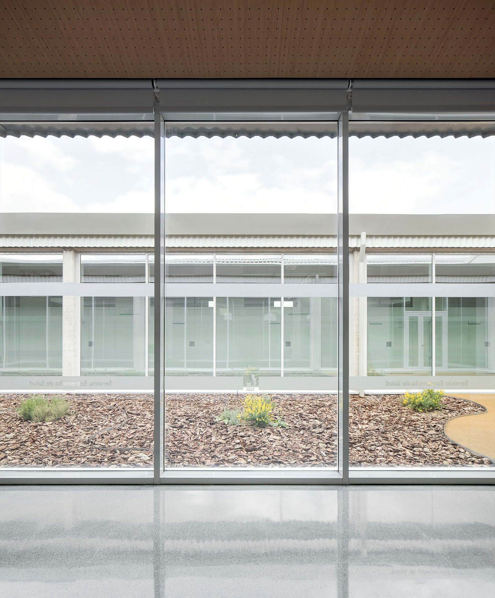 Estos dos patios generan dos espacios de referencia interiores, que hacen que la estancia en las zonas de espera sea amena, donde pueda disfrutarse de las flores, las plantas, vistas del cielo, sol en invierno, brisa en verano, y espacios amplios y seguros, más volcados hacia el exterior que hacia el interior.