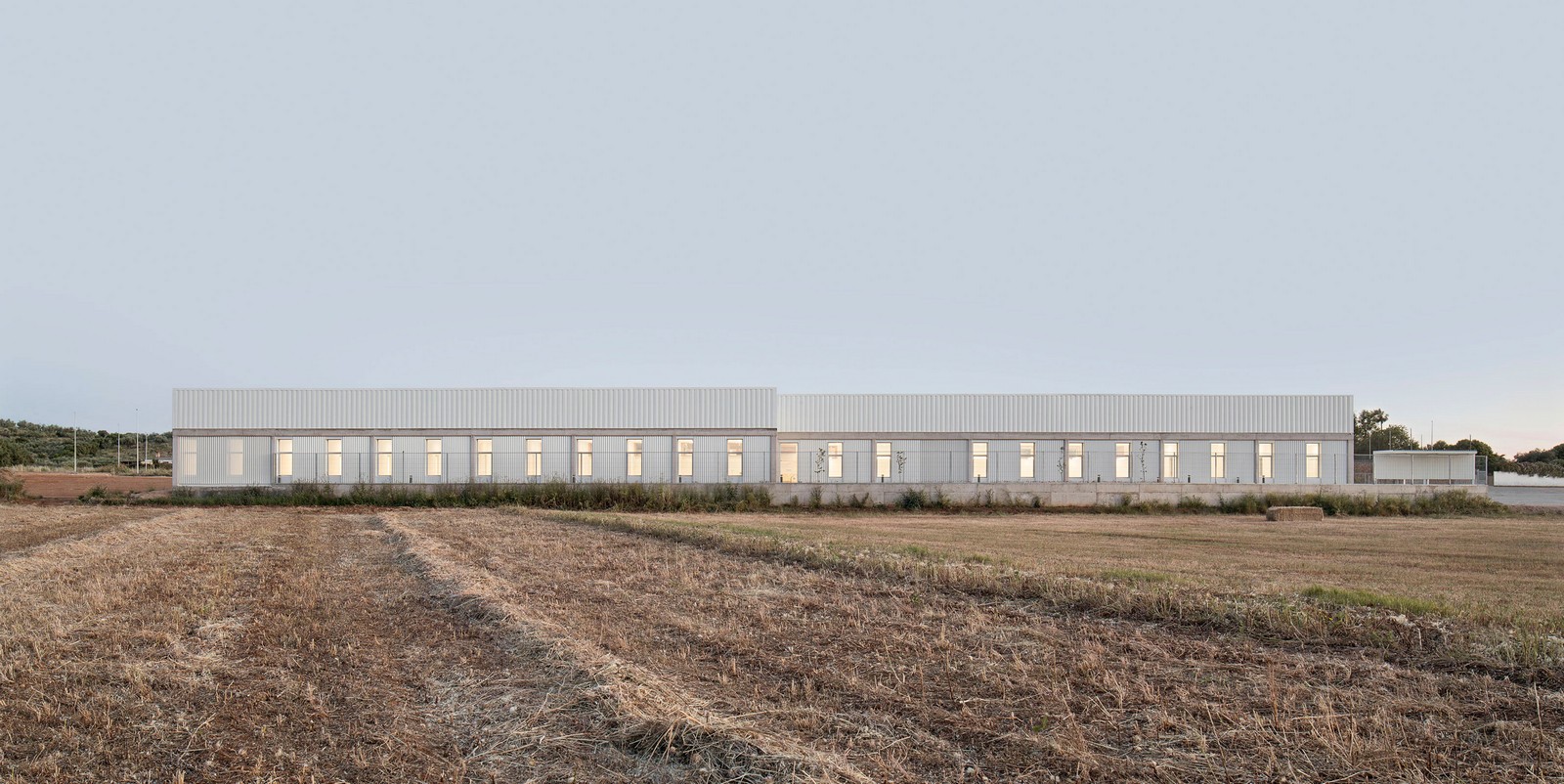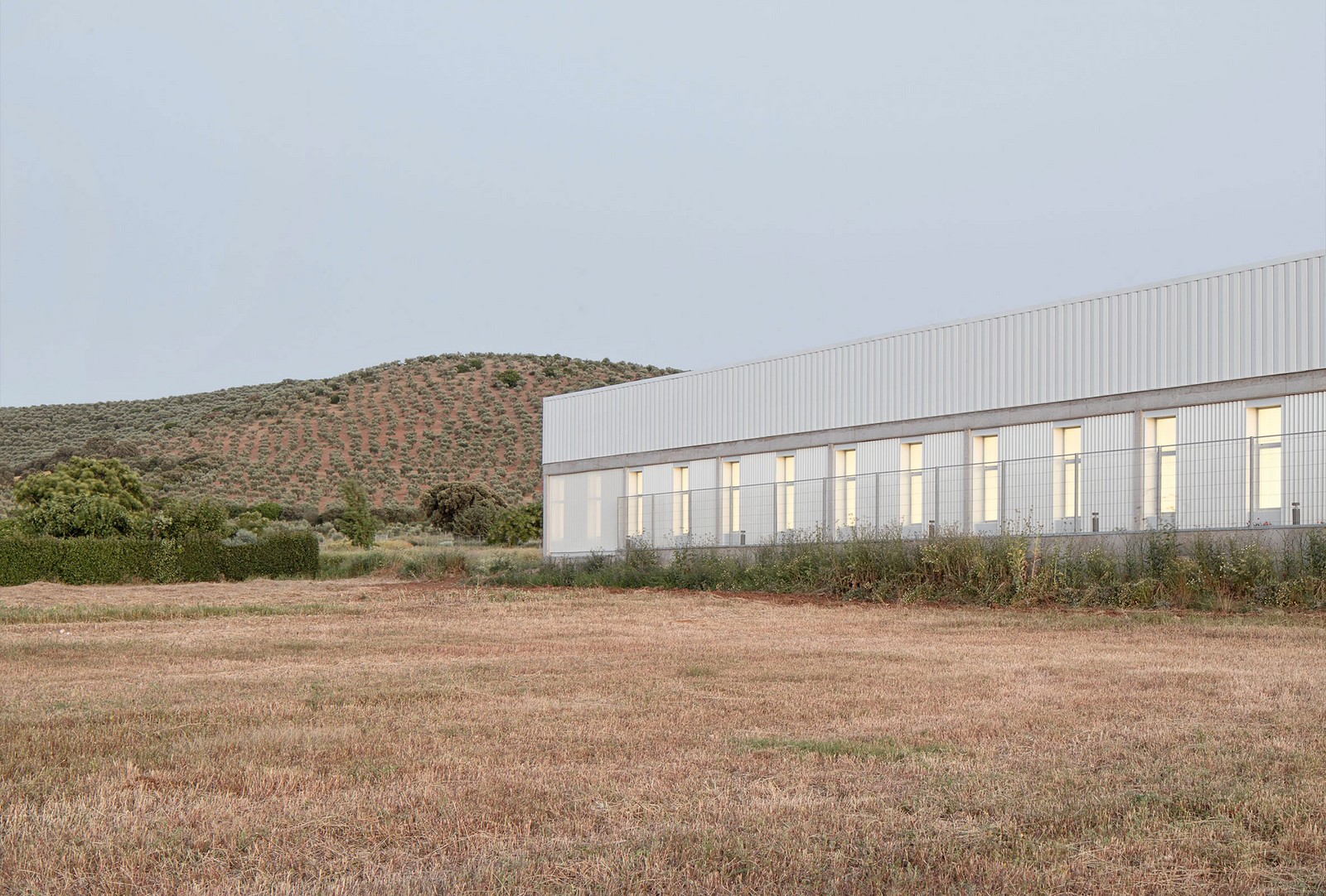 La adaptación a los cortos plazos de ejecución da lugar a un edificio industrializado hacia su exterior, sistemático y con envolvente de perfil quebrado, en relación con las marcadas líneas de los arados.