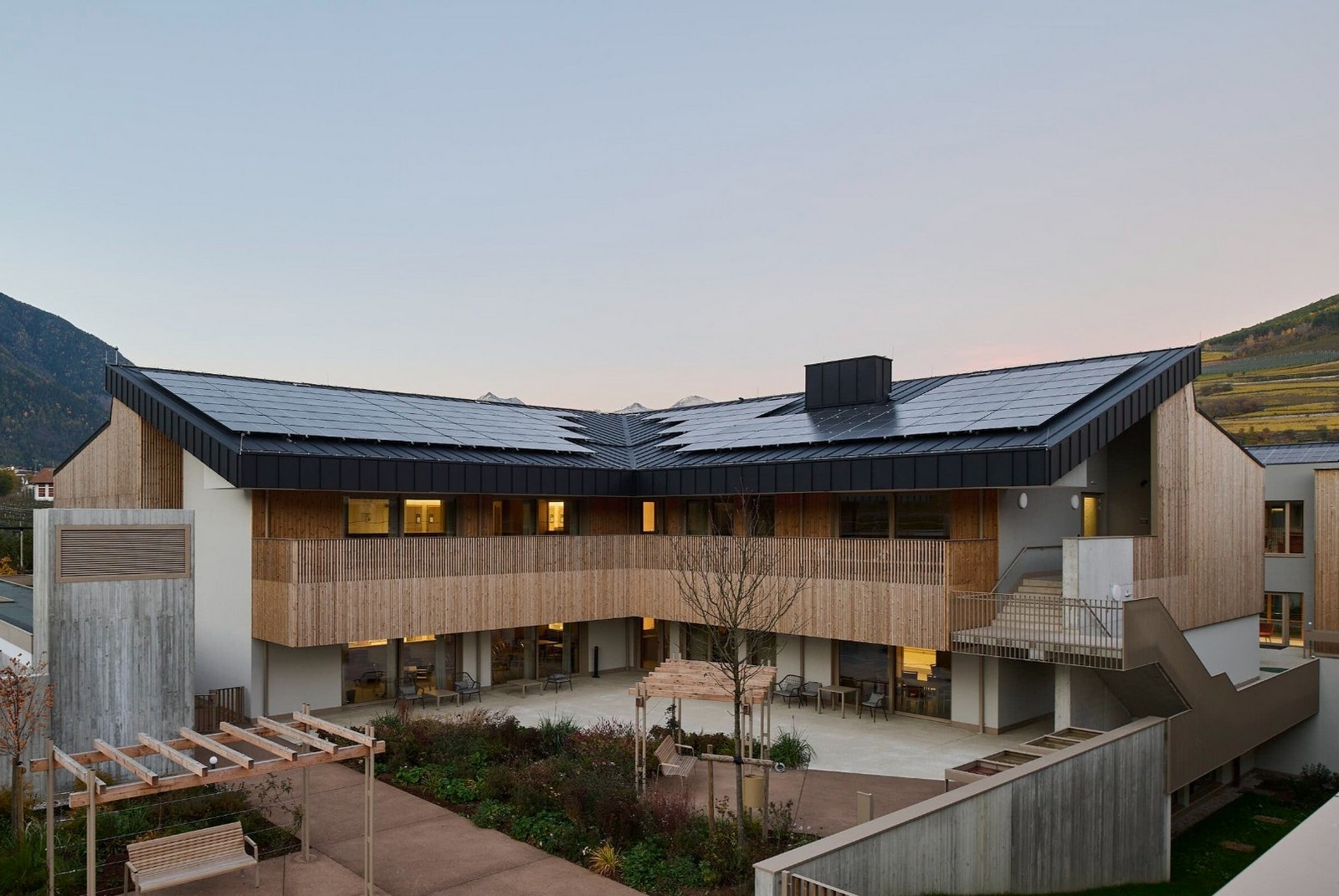 Entre los manzanos del Tirol del Sur, a medio camino entre Bressanone y Varna, el proyecto redefine el concepto de residencia para personas mayores. Casa Ella o Villaggio Santa Elisabetta, que abriró sus puertas en junio de 2025, no es solo una estructura sanitaria asistencial, sino que se presenta como un verdadero elemento de integración urbana en un área de transición entre la ciudad y el campo.