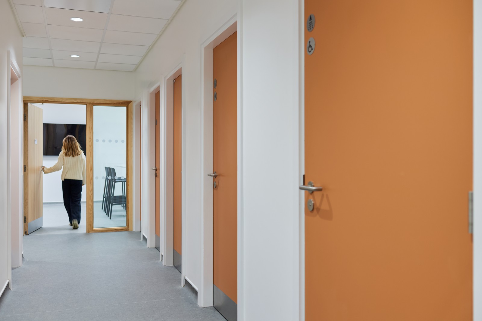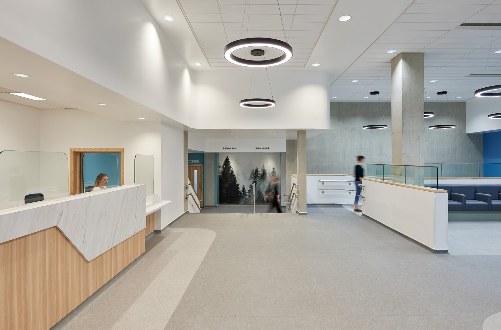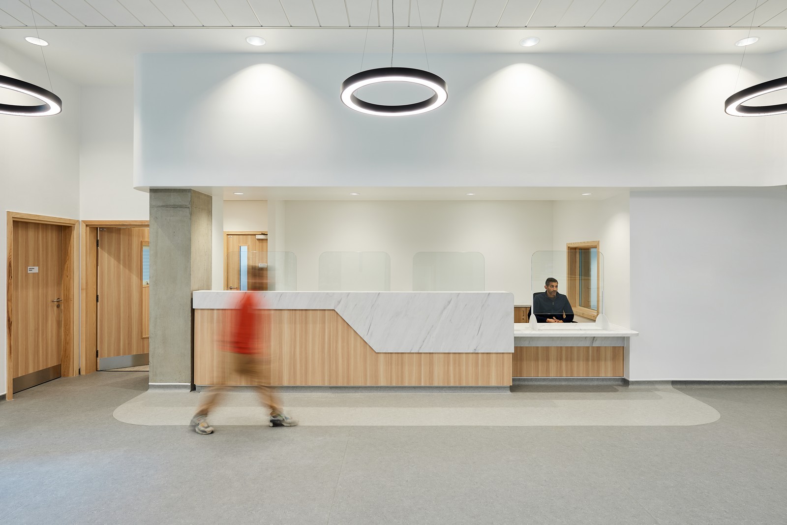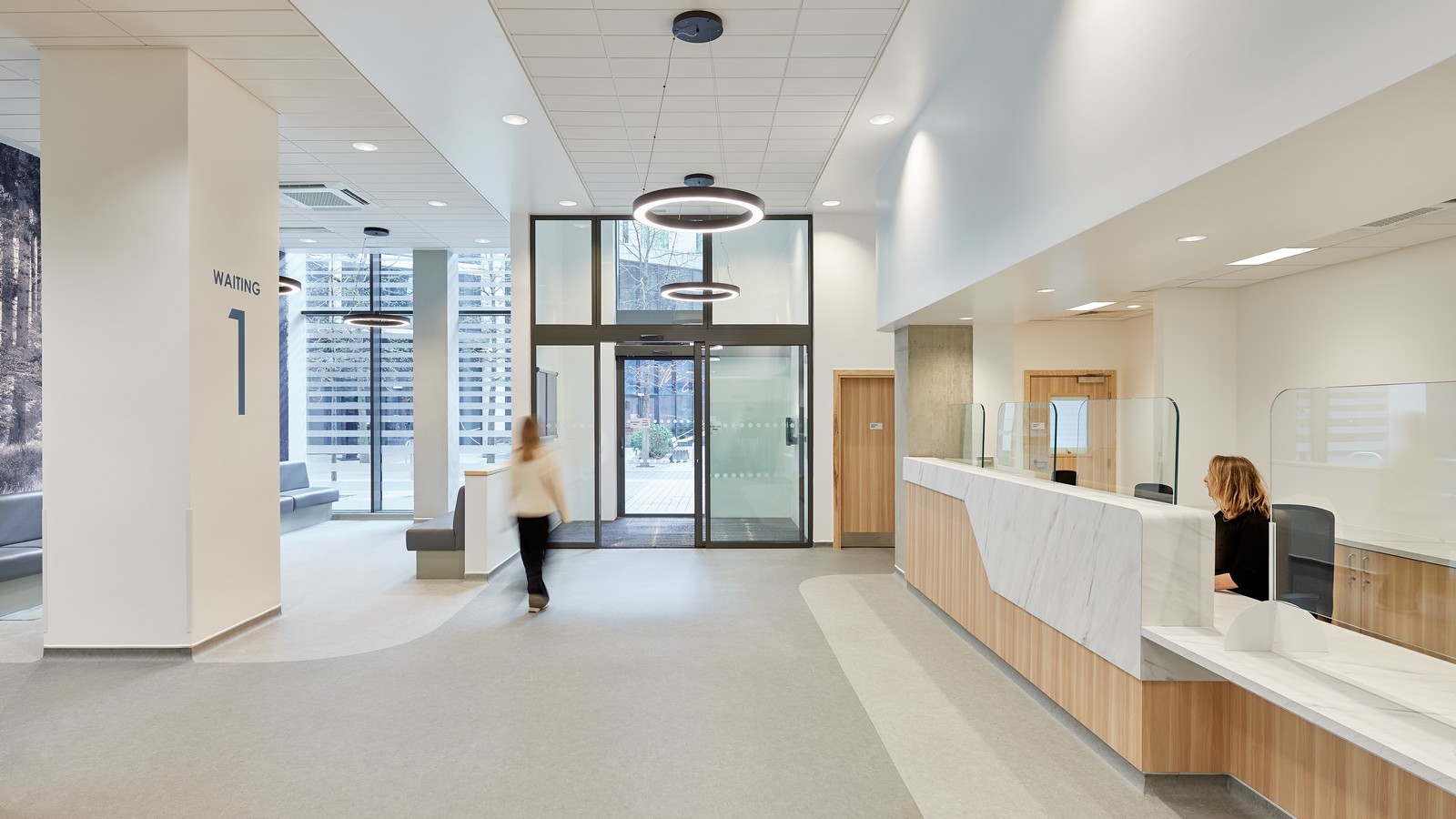 Además de cumplir con la normativa de construcción y la normativa sanitaria HBN (como superficies con contraste de colores y cambios de textura para usuarios neurodivergentes), el diseño permite que todas las llamadas telefónicas entrantes se respondan en una oficina separada para mayor confidencialidad, mientras que una sala insonorizada permite a los pacientes mantener conversaciones privadas lejos de la zona de recepción. Ambas son innovaciones sencillas que fueron el resultado de talleres de participación de las partes interesadas celebrados en momentos clave a lo largo del proceso. Estos talleres también dieron lugar a la incorporación de áreas específicas para cochecitos y sillas de ruedas, así como a una variedad de pantallas de registro y mobiliario para adaptarse a los diferentes usuarios.
